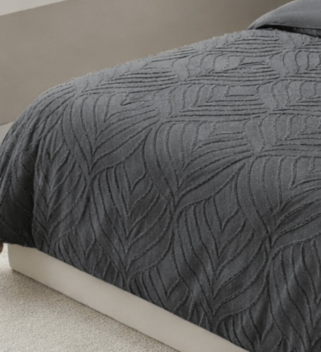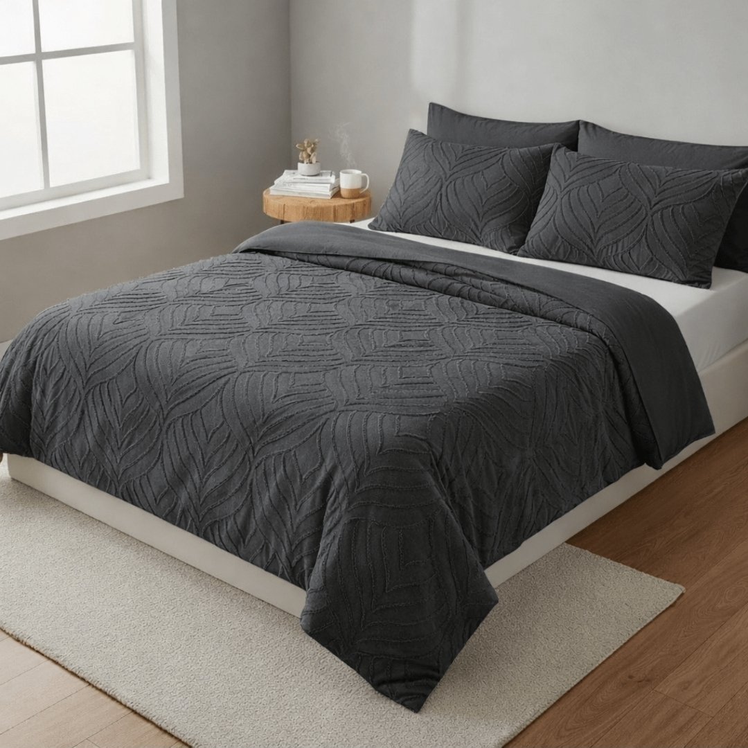 3-Piece Textured Polyester King Duvet Cover Set – Elegant Charcoal Leaf Pattern