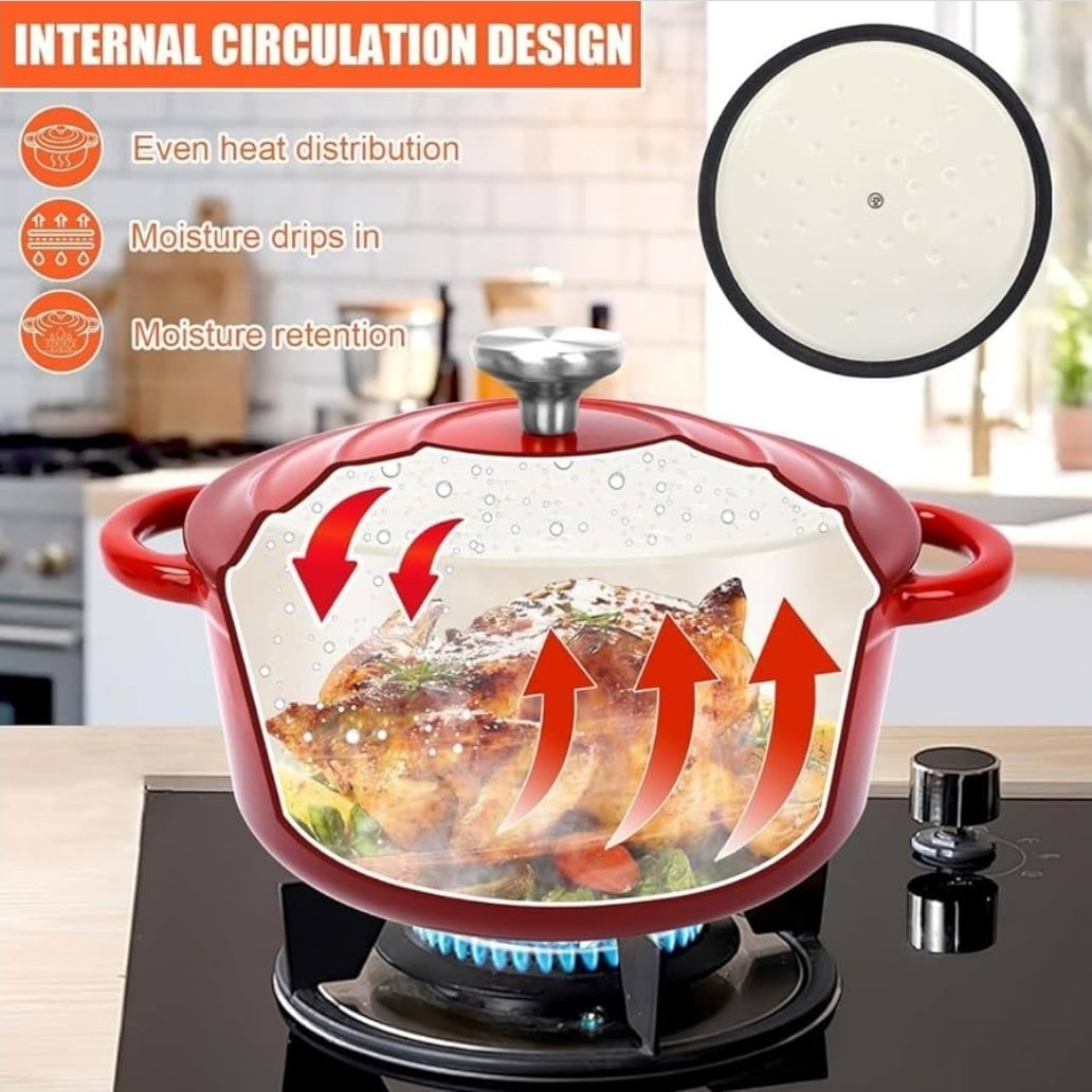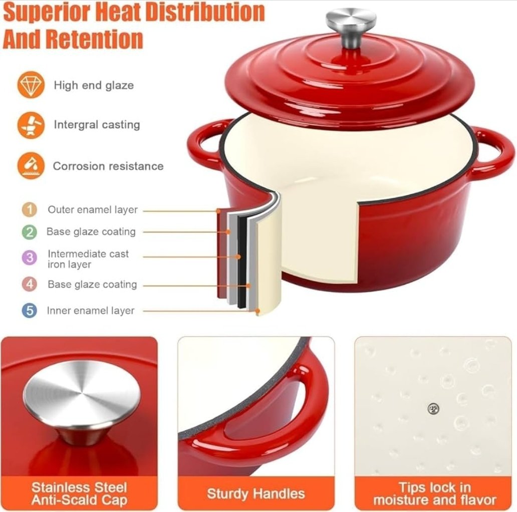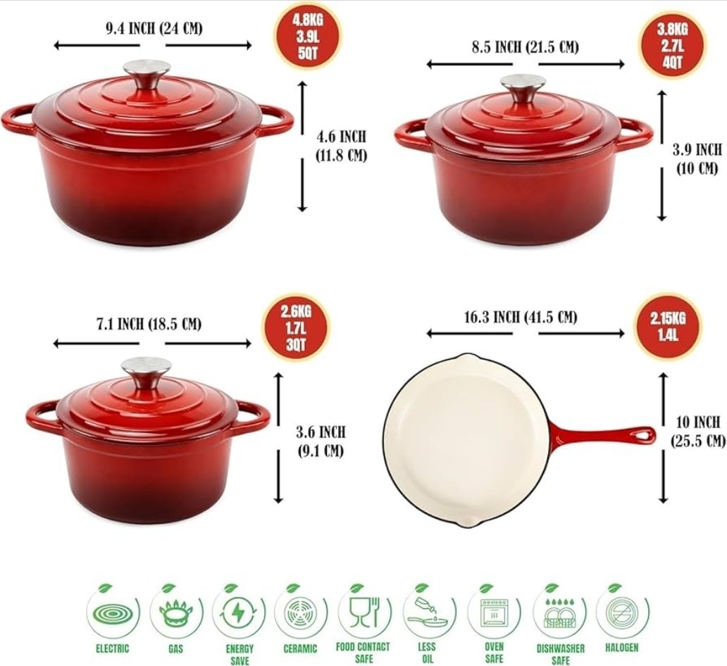 This set is crafted with a durable enamel coating that ensures superior heat retention and even distribution.
