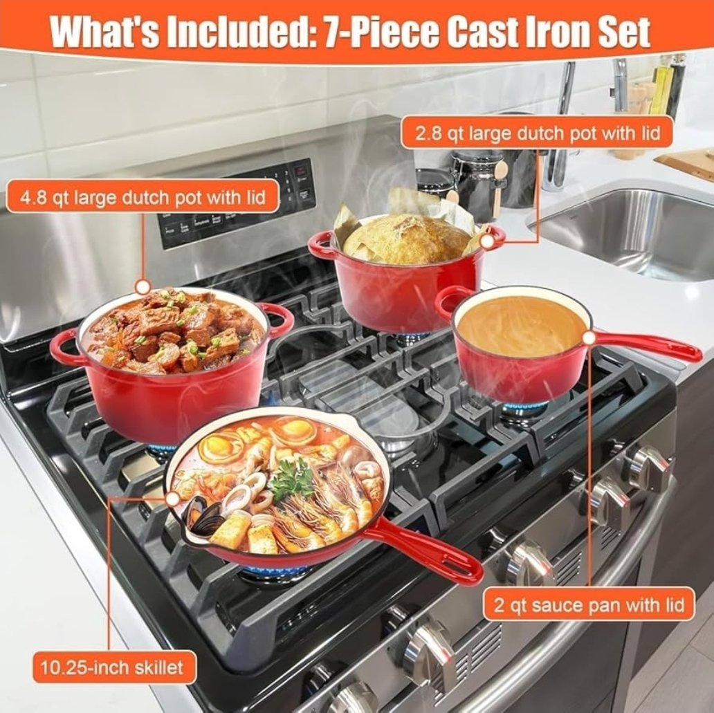 Elevate your kitchen with this luxurious 7-piece cast iron cookware set, designed for both performance and style.