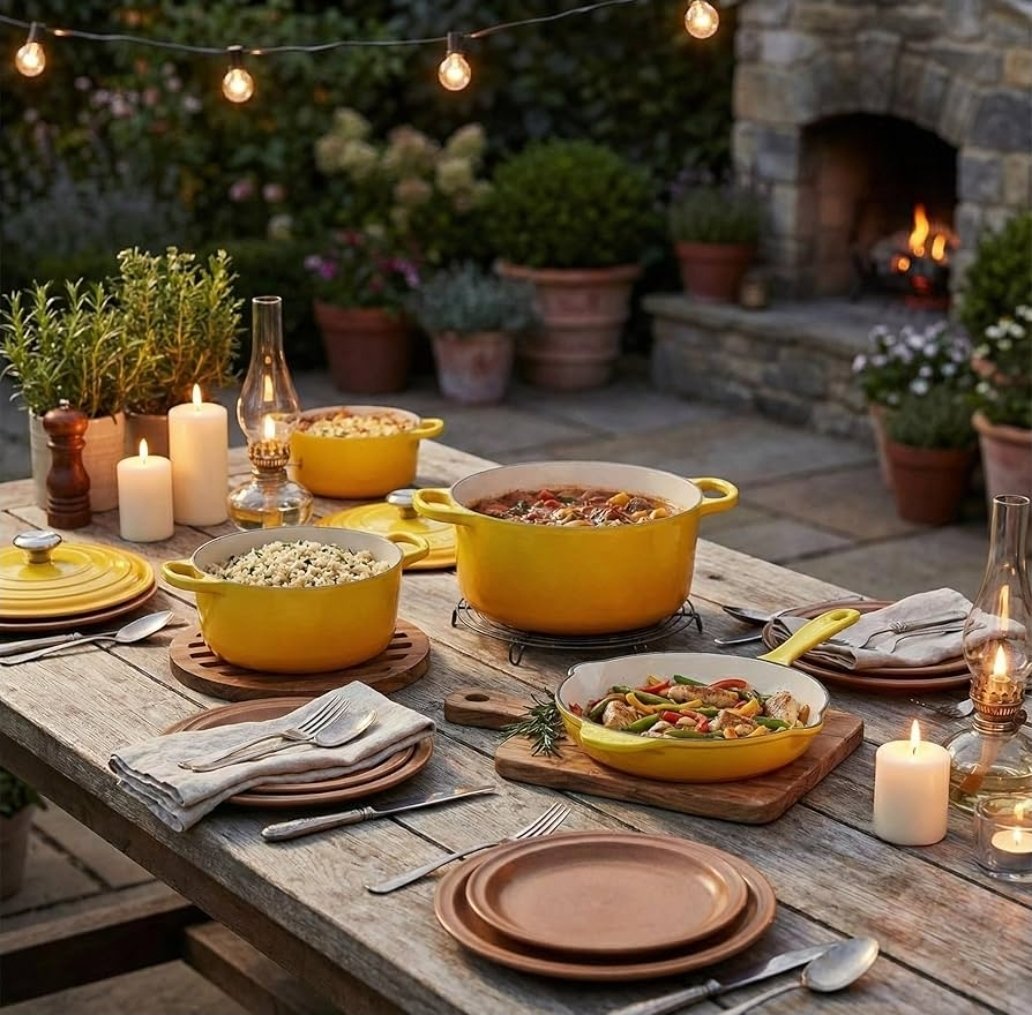 Complete 7-Piece Cooking Set Featuring three Dutch ovens with lids and a versatile skillet — ideal for searing, baking, frying, stewing, and slow cooking meals.
