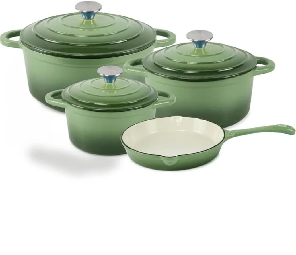 This set is crafted with a durable enamel coating that ensures superior heat retention and even distribution.